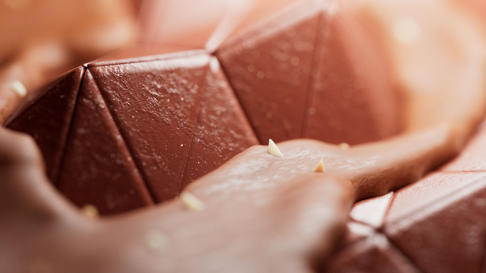 In our vibrant, playful setting, we arranged the truffle’s forms into origami-like shapes, revealing the rich ingredients inside. The chocolate, coupled with gooey caramel and crisp nuts, needed to visually convey a strong sense of taste.